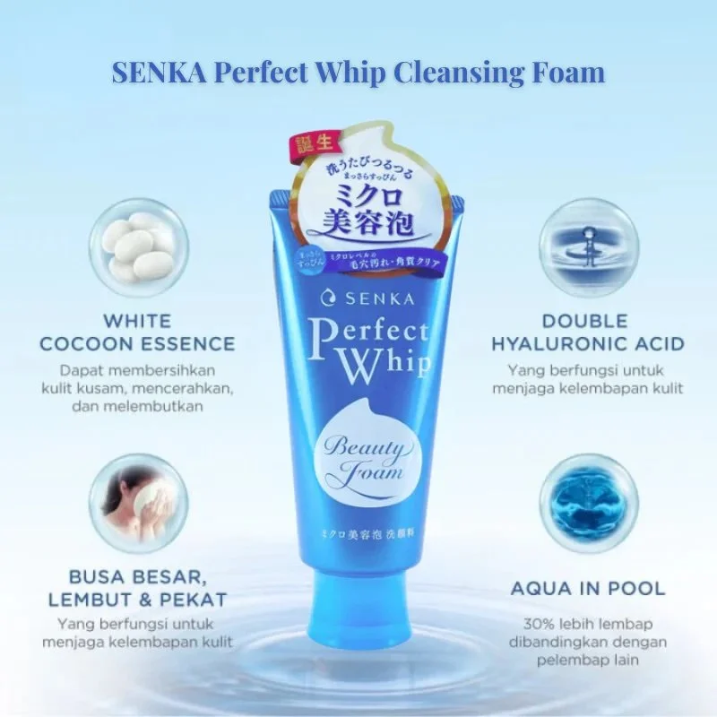 Shiseido Senka Perfect Whip is a Japanese facial cleansing foam that removes dirt, oil, makeup, sebum and other impurities from pores while keeping skin barrier moist.