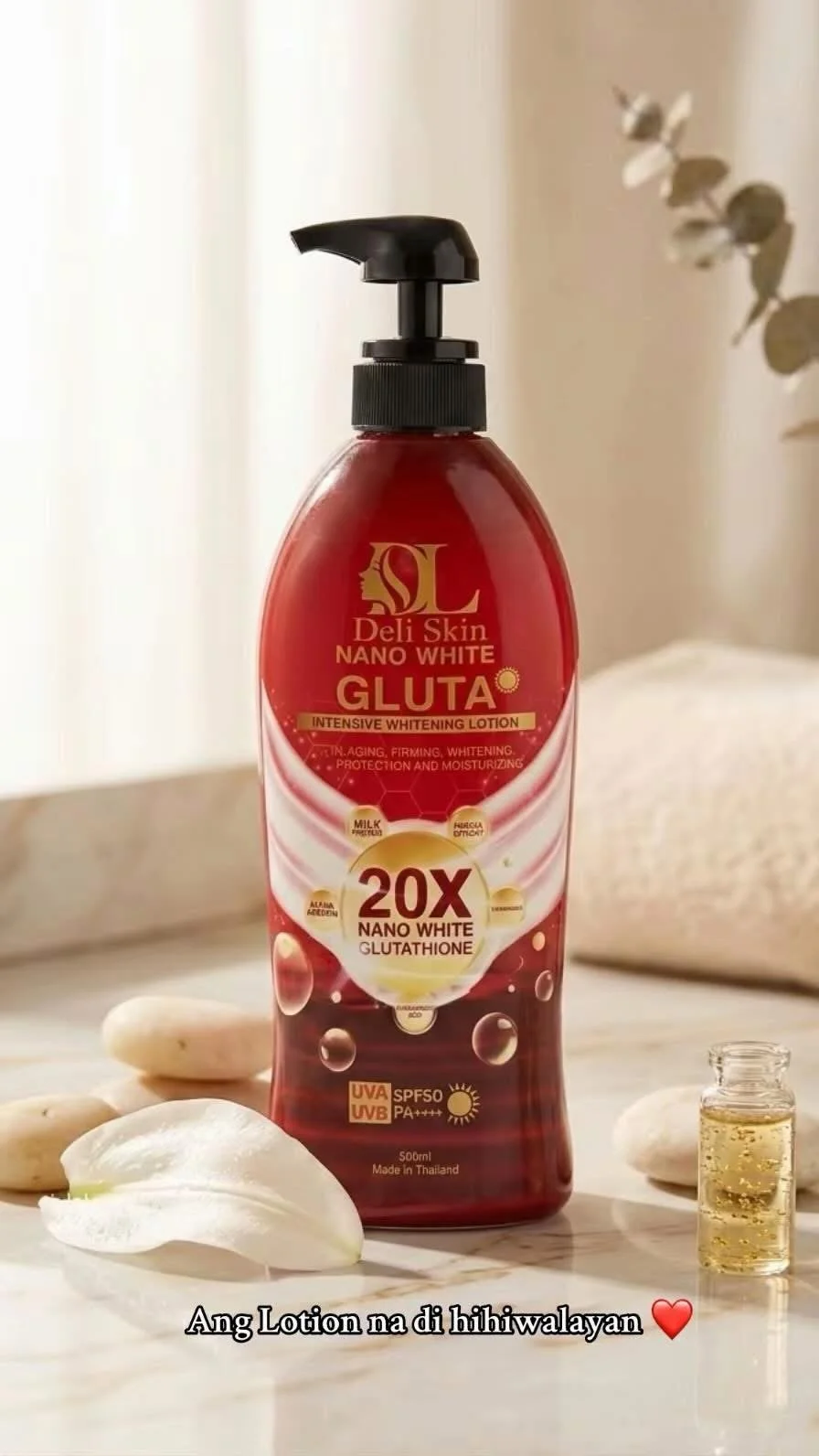 This luxurious lotion is infused with 20X Collagen + Glutathione, giving you advanced whitening power and deep nourishment. Formulated with SPF50