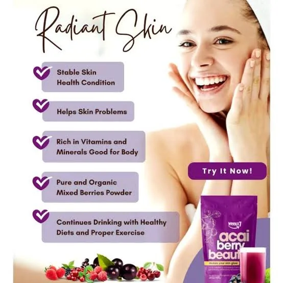 ACAI Berry Beauty, Makes Your Skin Glow, Acai and Cranberry Powder for Women, Natural Superfood for Radiant Skin, Anti-Aging and Detox – 35g (Packing May Vary)