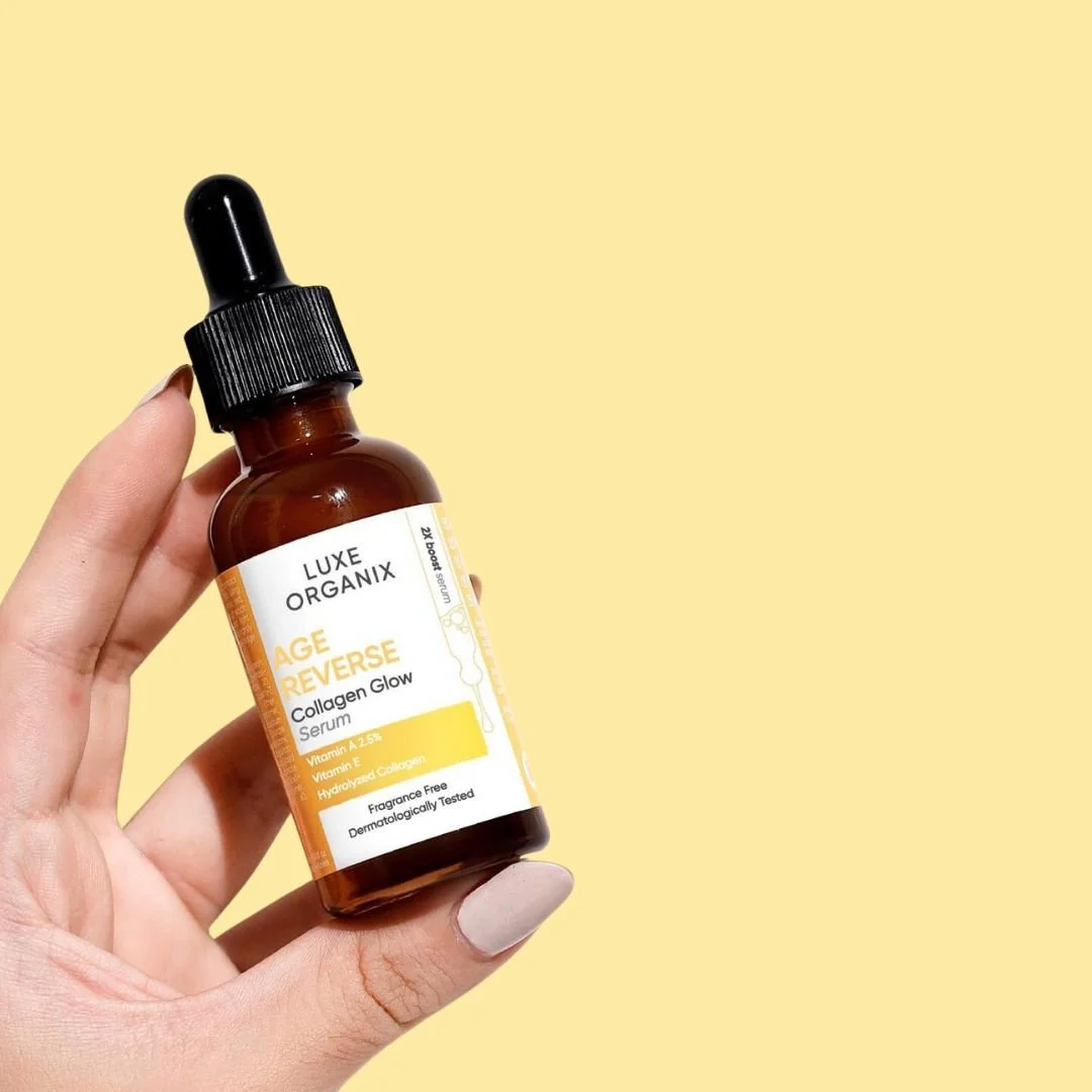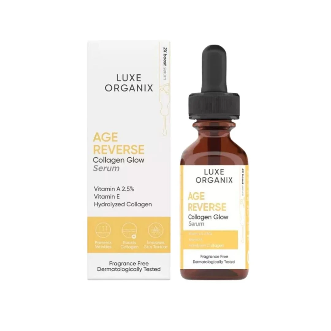 Luxe Organix Age Reverse Collagen Glow Serum contains the most effective active ingredients to help improve skin elasticity, firmness and texture, giving your skin a vibrant and youthful glow.