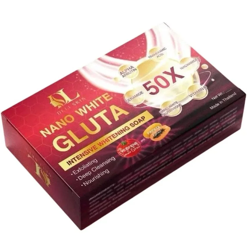 Deli Skin Nano White Gluta Intensive Whitening Soap harnesses advanced nano-technology combined with glutathione to deliver professional-grade skin brightening results. This specialized formula works to reduce the appearance of dark spots, uneven tone, and hyperpigmentation while promoting a luminous complexion. The intensive whitening complex penetrates deeply to support skin's natural radiance from within. Ideal for those seeking visible brightening effects, this soap cleanses gently while treating, making it an efficient addition to any skincare regimen targeting luminosity and even skin tone.