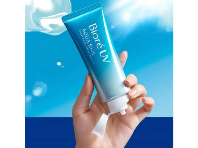 Bioré UV Aqua Rich Watery Essence SPF50+ PA++++, a popular Japanese water-based sunscreen. It is known for its "Micro Defense" technology, which ensures even coverage at a microscopic level while remaining incredibly lightweight.